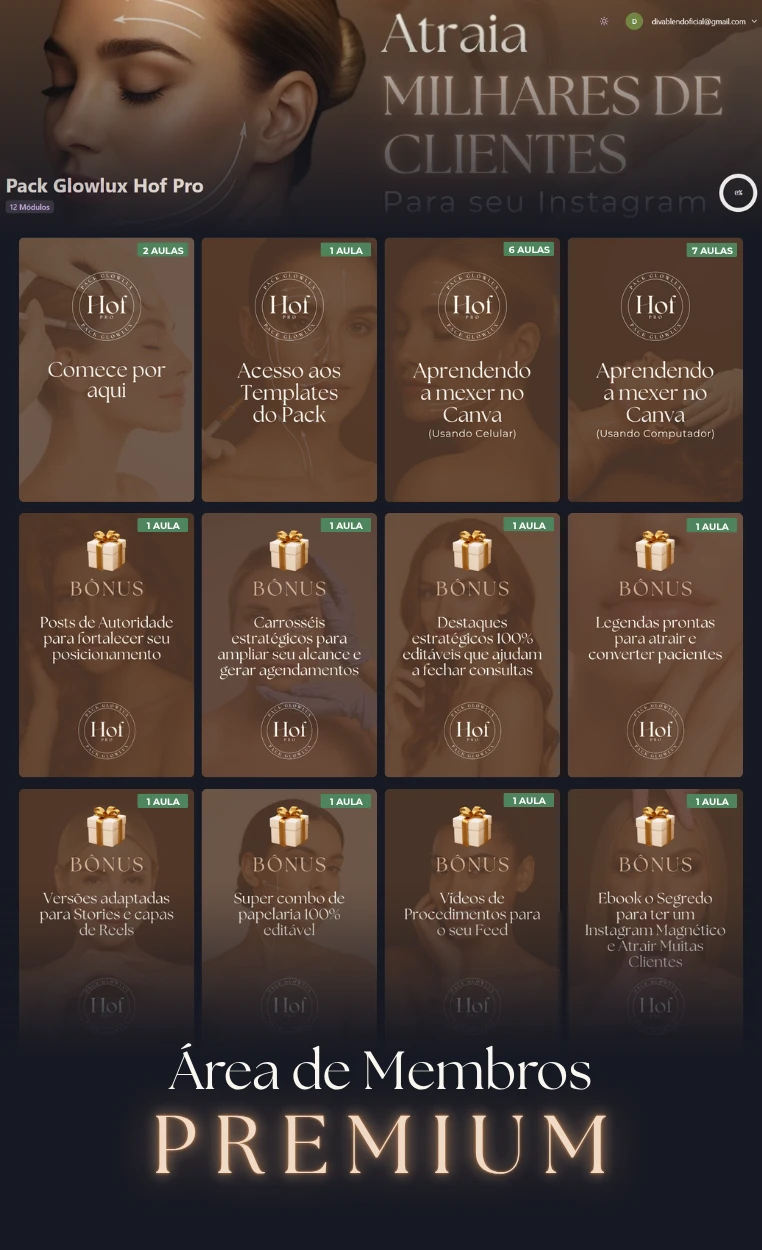 Ao garantir o GlowLux HOF Pro, você recebe acesso imediato à área de membros premium com 253 artes estratégicas, 100% editáveis e prontas para usar. O pack está todo organizado por categorias, agilizando o processo para encontrar as artes que voce quer!